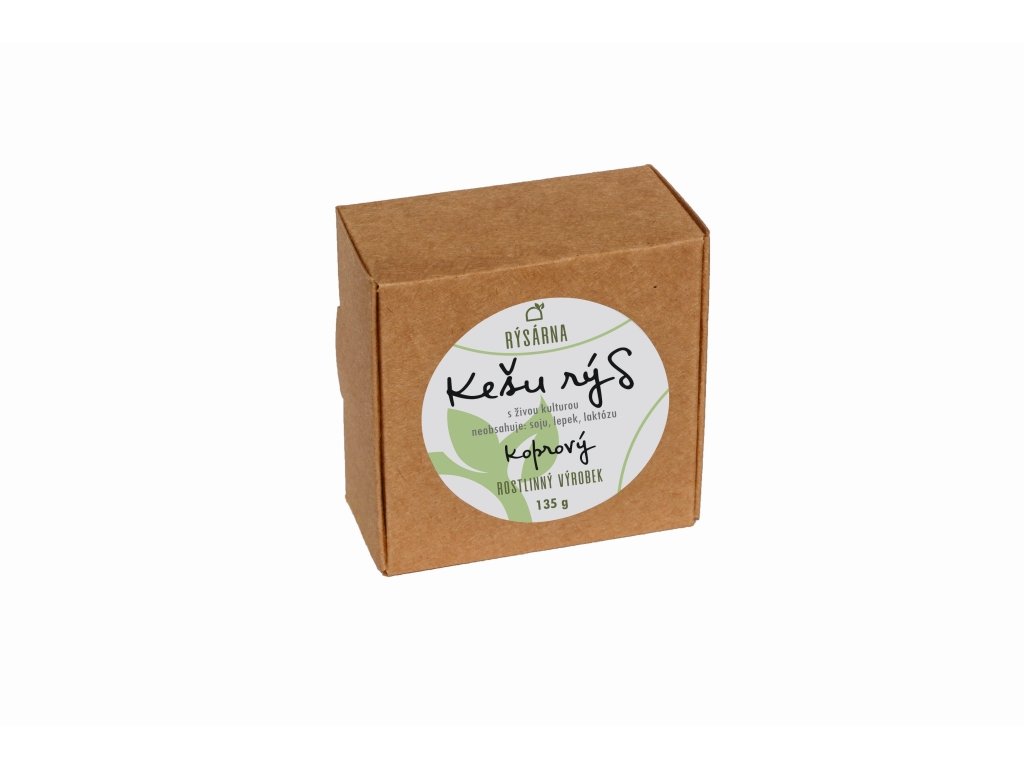 Voda, kokosový tuk, KEŠU ořechy, sůl, kultura z quinoi, pochoutkové droždí, kopr. Může obsahovat stopy LEPKU.